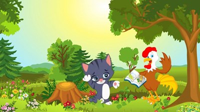 Mèo con ngồi bên một hốc cây, trên tay chú là quyển sách tập tô rất mới, rất đẹp. Mèo con ngắm nghía một lúc rồi “soạt! soạt!”, chú ta xé quyển sách. Thấy vậy, bác Gà trống đang kiếm mồi gần đó liền hỏi: