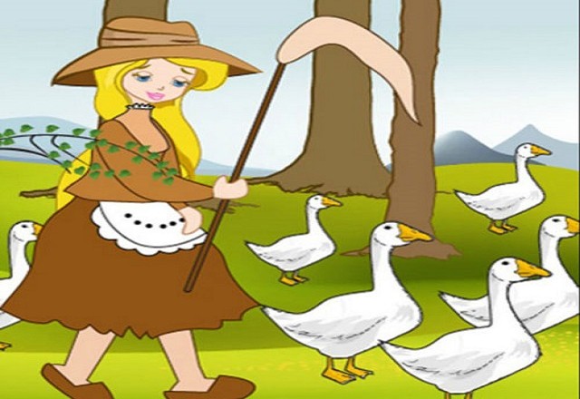 Người bảo: “Ở ngoài kia, ta có một anh chàng chăn ngỗng, hãy để cô ta giúp việc vậy”. Chàng trai tên là Cuốc. Vợ chưa cưới của Hoàng tử phải giúp anh chăn ngỗng.